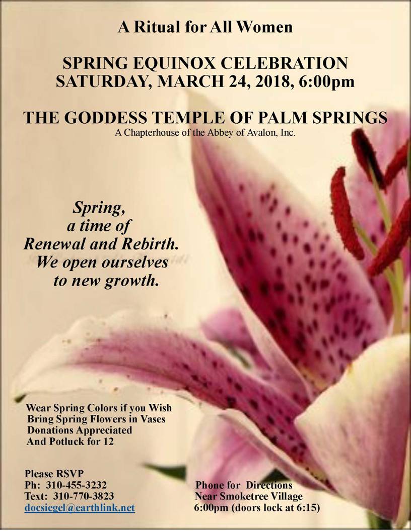 Spring, a time of Renewal and Rebirth. We open ourselves to new growth. Wear Spring colors if you wish. Bring Spring flowers in vases. Donations Appreciated and Potluck for 12.